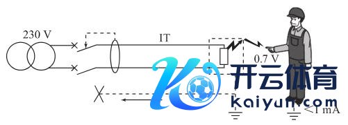 系统发生单相绝启事障时,固然故障电流数值较小,但若该电流万古候侵袭电缆和建设的绝缘,可能引起故障点绝缘点火,导致相与相之间的故障 ;单相绝启事障时非故障相的对地电压会由相电压升高为线电压万古候不破除故障可使非故障相也出现新的故障形成两相接地短路。当配电显现过万古显现散布电容较大IT系统将等效于TT系统,若发生绝启事障,故障电流会权贵变大 ,产生危急的搏斗电压,导致东说念主身触电事故的发生,以230V系统某一相为举例图3所示。