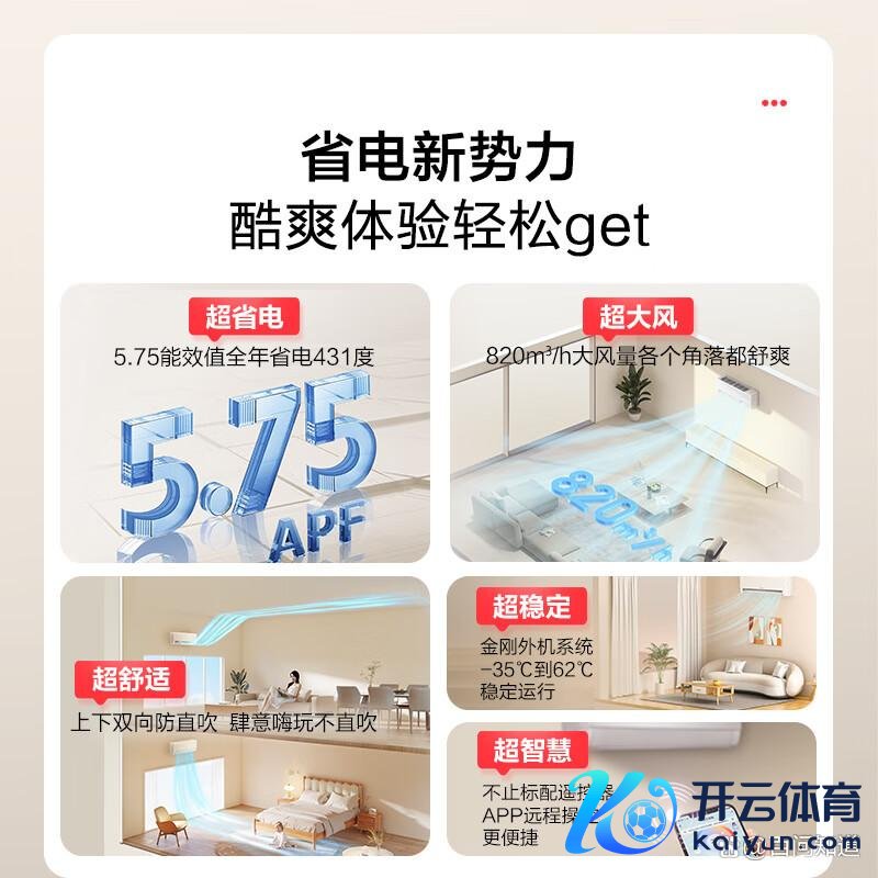 超省电,助您节能省钱。统带超省电空调不仅具备超过国标一级能效的APF值5.75,可全年省电42%,累计省俭431度电,更有一键AI省电花式,每小时立省29%。在高效节能的同期,还贴心研究到用电资本,让您的日常开支变得愈加经济实惠。不管是长时期使用已经一会儿开启,都能感受到彰着的节能成果。