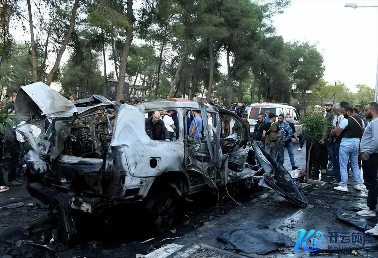 10月21日,在叙利亚都门大马士革西部迈宰地区,东谈主们辘集在遭袭汽车旁 图:新华社