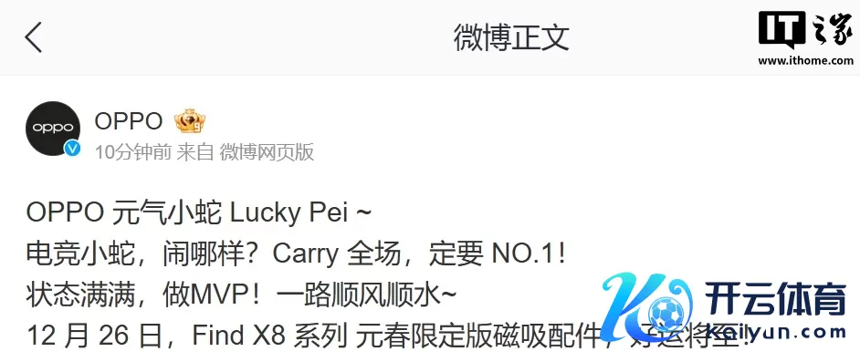 IT之家 12 月 18 日音书,OPPO 开发两日发文,预报 Find X8 系列元春戒指版磁吸配件,将于 12 月 26 日发布。