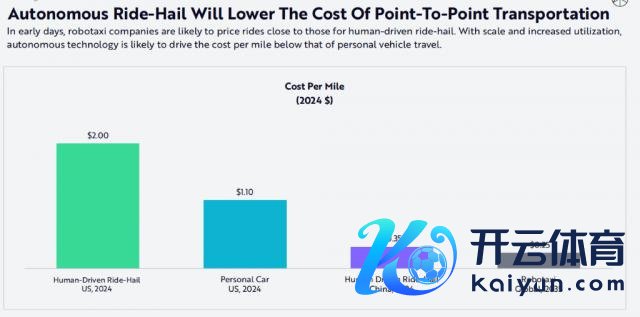 自动驾驶汽车的每英里资本预测将显贵下跌。举例,特斯拉的自动驾驶出租车预测每英里的资本将降至 0.25 好意思元,远低于传统出租车和东谈主类驾驶的网约车。