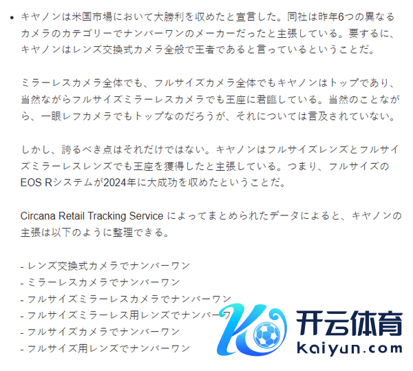 外媒:佳能已成好意思国可换镜头相机之王 六大品类份额第一!开yun体育网