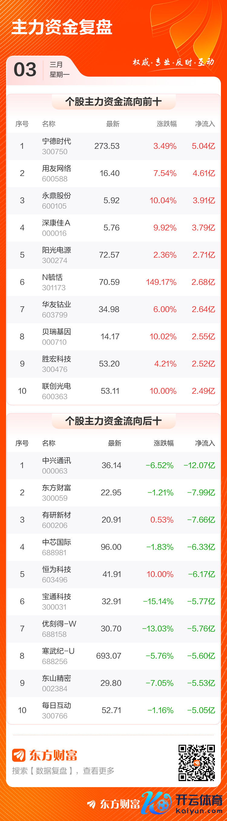 主力净买入个股中,宁德时间名依次一,主力净买入5.04亿元;用友积贮名依次二,主力净买入4.61亿元。