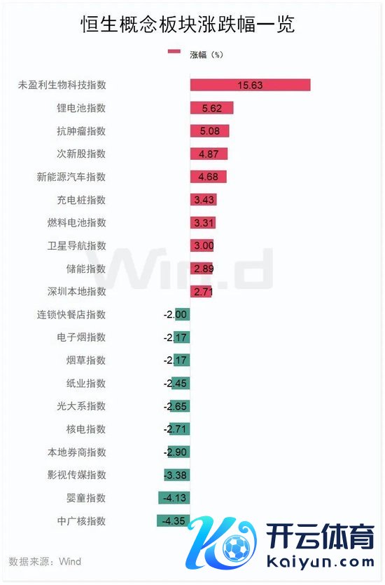 从盘面来看,Wind认识板块涨跌不一,未盈利生物科技指数领涨15.63%,锂电板指数涨5.62%,抗肿瘤指数涨5.08%,中广核指数跌4.35%,婴童指数跌4.13%,影视传媒指数跌3.38%。