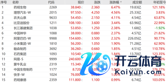 恒生指数成份股中33只高涨,52只着落。药明生物涨6.47%,商场看好其立异药管线进展;盼望汽车涨4.56%;农夫山泉涨4.11%,领涨蓝筹。