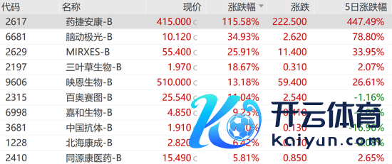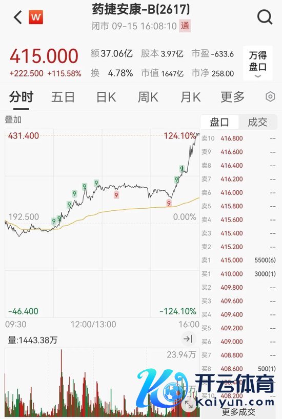 9月15日,依据香港来去所《主板上市递次》18A章上市的未盈利生物科技企业药捷安康平开高走,一度狂飙124.10%,全天收于415.00港元/股,涨115.58%。
